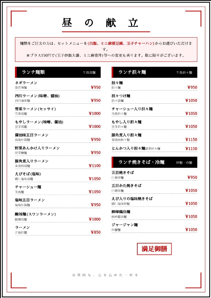 ランチ麺類